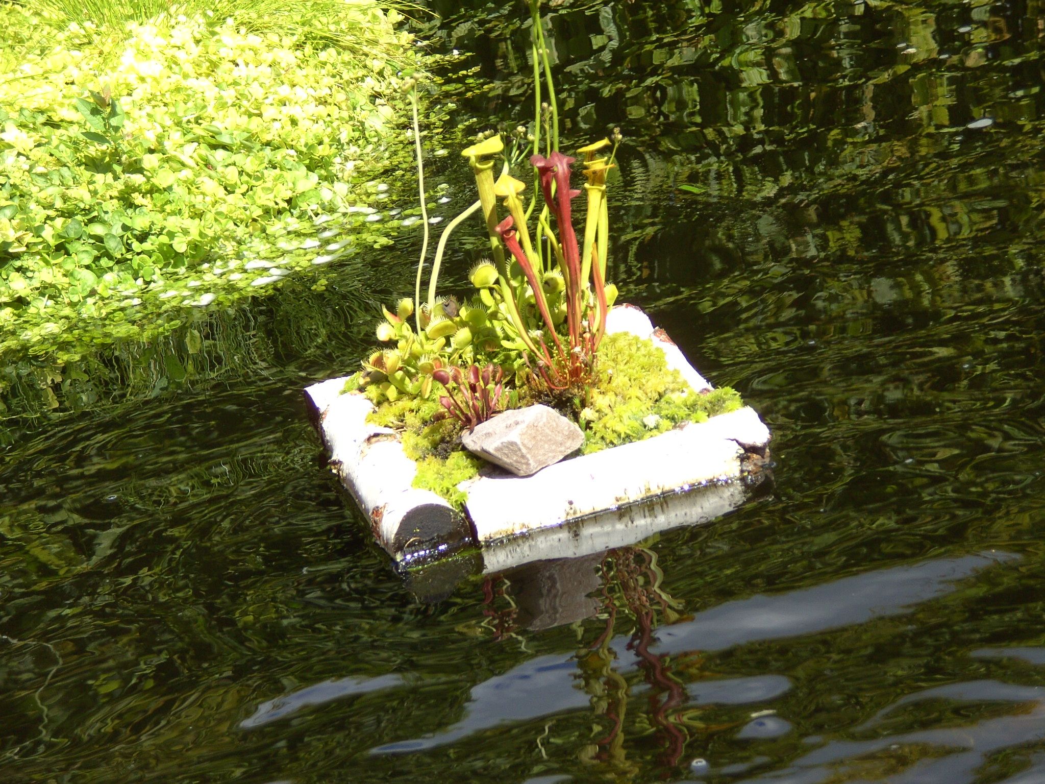 Jetzt setze ich immer Pflanzen aus den Körben am Rand auf die Insel, der Erfolg ist jedoch mäßig.... ( Ach ja, PH 6,85 ...KH 2-3 ....und offenbar wenig Nährstoffe im Teich....