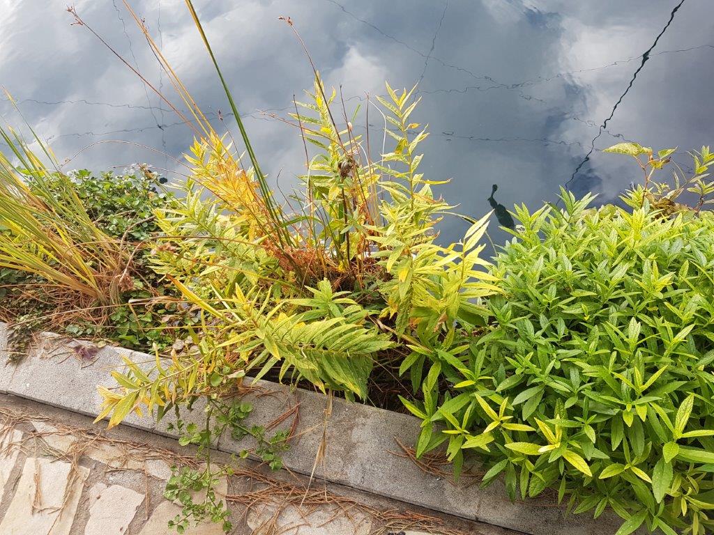 3. Auch in den Pflanzkörben wächst einiges nicht: Froschlöffel verschwindet, Sumpfschachtelhalm dto., der Goldfelberich mickert am Rande des Existenzminimums...
