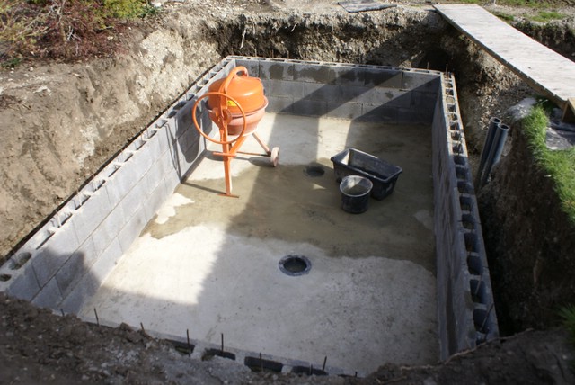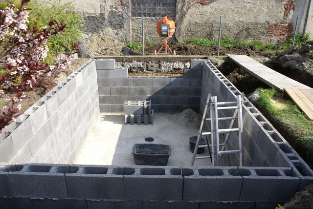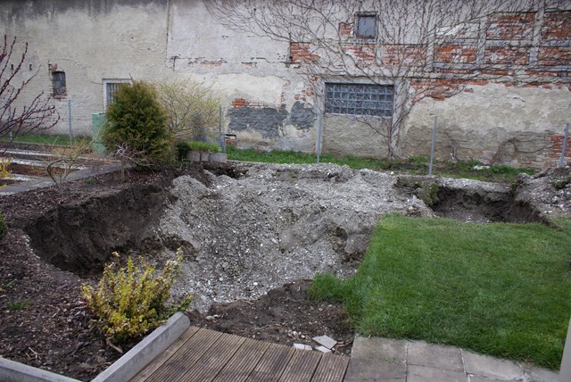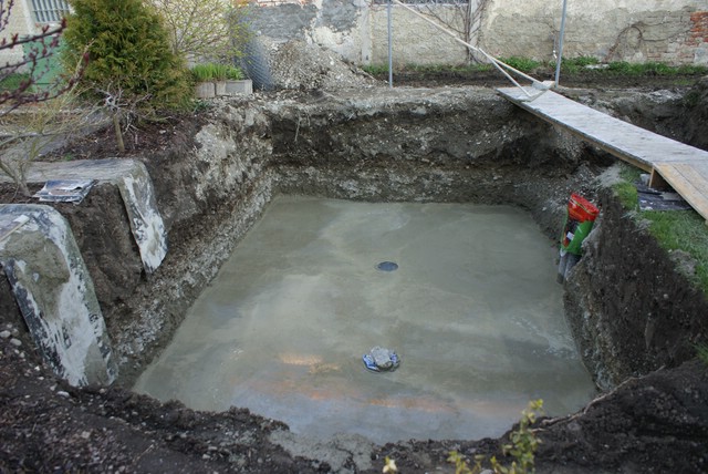 Da wir nur 80cm Erdschicht/Mutterboden haben und danach reiner Donaukies kommt, war für uns klar, dass wir einen gemauerten Teich bauen werden.