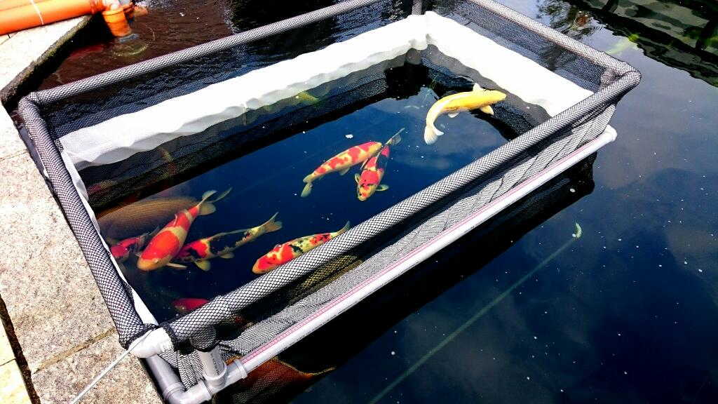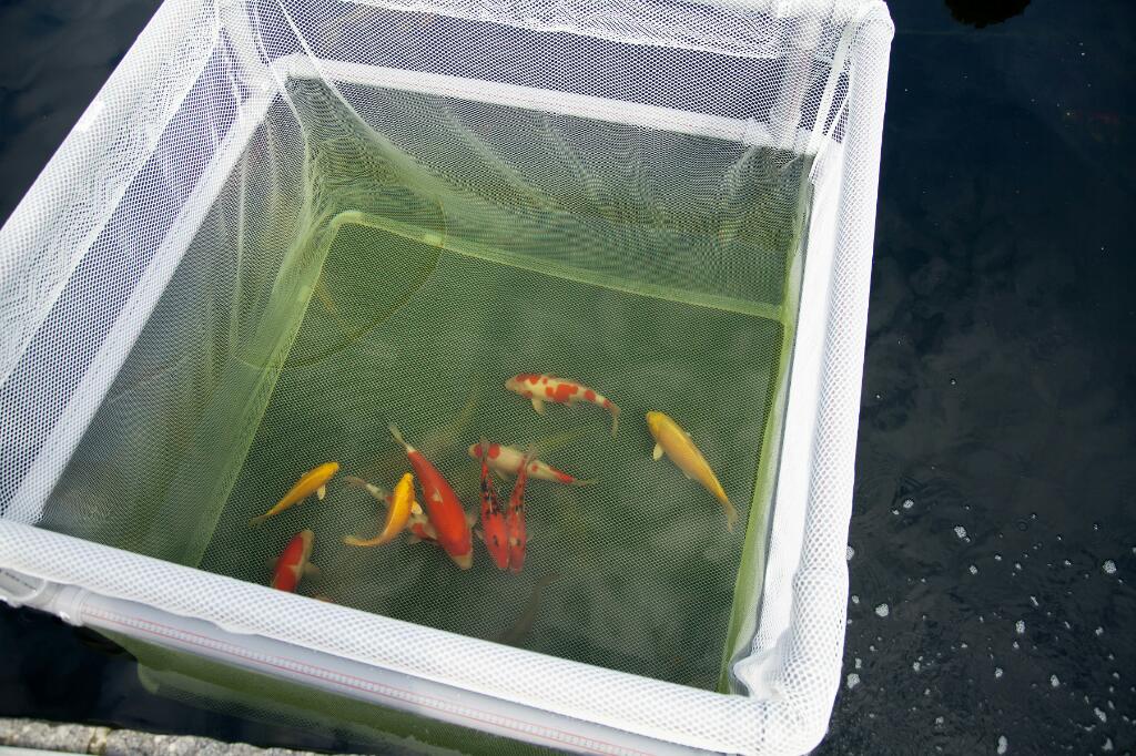 Dateikommentar: Gehege inklusive Springschutzrahmen 2,10m x 1,28m - Tiefe 1,35m, Maschenweite 7mm mit integriertem Schwimmfutternetz (damit das Futter nicht aus dem Gehege getrieben wird)