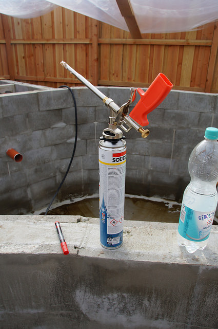 Die Dämmung habe ich mit einem PU Kleber, ähnlich wie Bauschaum, angebracht.