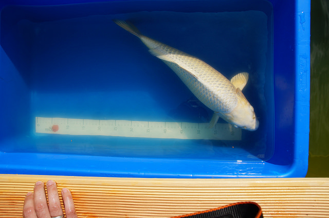 Die Fische ließen sich im Teich bereits teilweise anfassen und sind nicht groß ausgewichen.