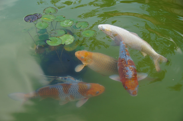 Sobald ein Koi darunter schwamm, war er verschwunden.