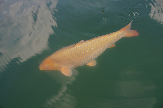 Der Koi gehört zur ruhigen Fraktion und ist recht zutraulich.