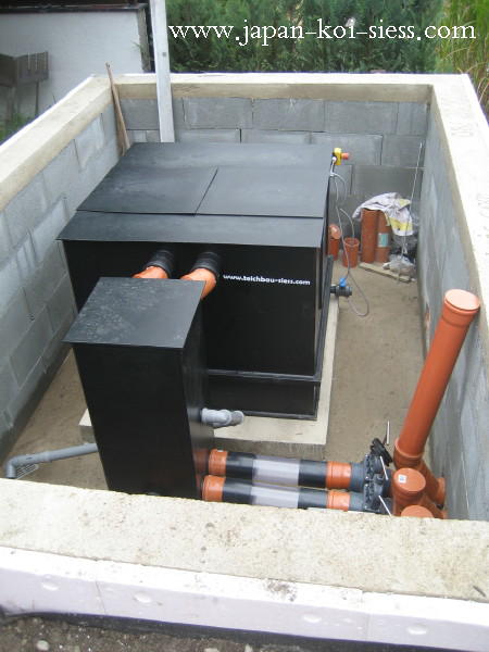 Unser Showteich ist selbstverständlich fertig und die komplette Anlage samt Filtertechnik ist voll in Betrieb.