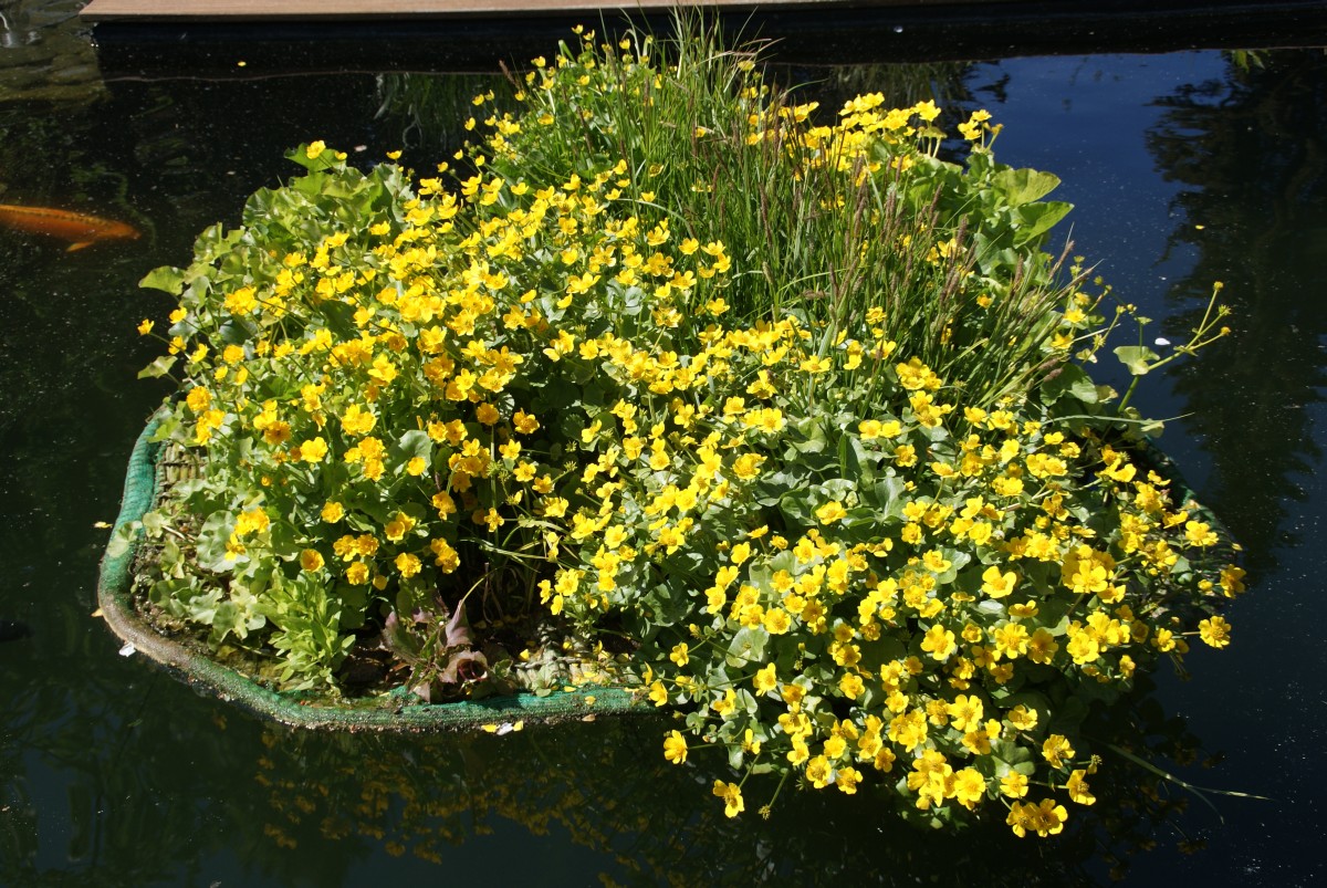 Und hier der abgegrenzte Pflanzbereich! Diese Lösung gefällt mir persönlich sehr sehr gut! Bei einer Teicherneuerung wird soetwas mit Sicherheit bei mir auch kommen. Die Pflanzen ziehen die Nährstoffe, ohne das Ablagerungen oder Gammelecken entstehen, denn diese können einfach unter den Pflanzen abgesaugt werden. Der Bereich war mit Natursteinen vor den gefräßigen Koi geschützt.