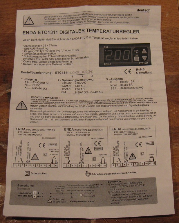 Enda Temperaturregler ETC1311 ETC1311-RT-230 230 V/AC Ausgänge 1 Relais 8 A