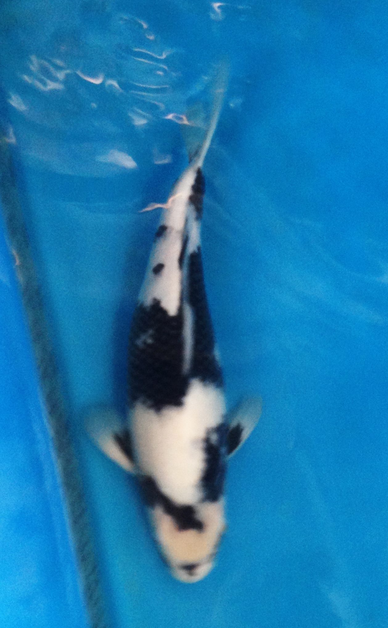 Ein echt schicker Kindai-Showa, der nur nicht in den Pond kommt, da ich dort inzwischen alle Fische auf 65cm und mehr habe und es mir bei der kleinsten Dame halt am einfachsten fällt, diese abzugeben.
