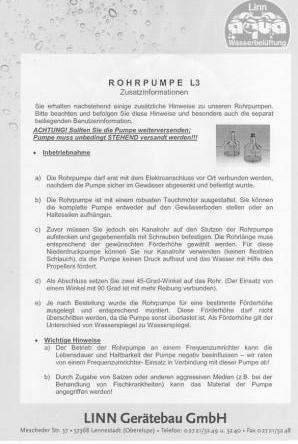 Gewährung/Garantieansprüche machst du nicht bei Linn geltend, sondern erstmal bei deinem Händler. Du solltest die Pumpen bei Teichtech.de kaufen, das kann ich dir nur empfehlen. Denn