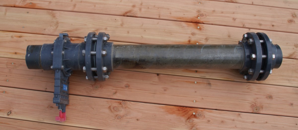 Statischer Mischer - 110mm, gebraucht, der Praher Zugschieber riegelt nicht mehr 100 Prozent dicht ab, dient also hauptsächlich zur Durchflussregulierung! Ansonsten absolut hochwertiger Inline Mischer mit zwei Anschlüssen für die normalen Luftschläche! Innen dreckig von Algen etc., wurde aber mehrmals mit einem Gartenschlauch gespült!
