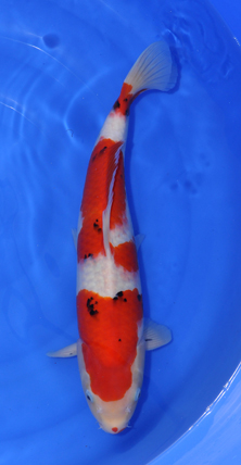 Der Fisch ist vom Body her immer noch schön lang gestreckt und zeigt einen langen Schädel mit großen und langen Kiemendeckeln, so dass ich hier auch noch weiterhin ein konstantes Wachstum erwarte. Der Body ist nicht ganz so kräftig wie beim Oomo-Showa und auch die Farbqualität ist eine Klasse schlechter.