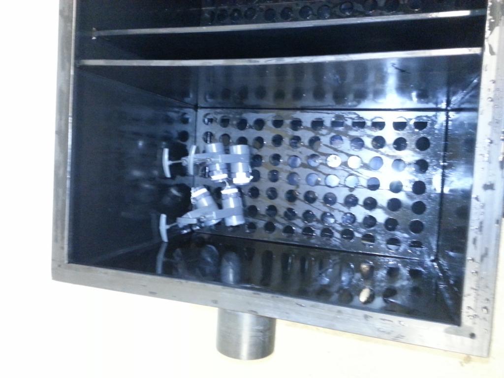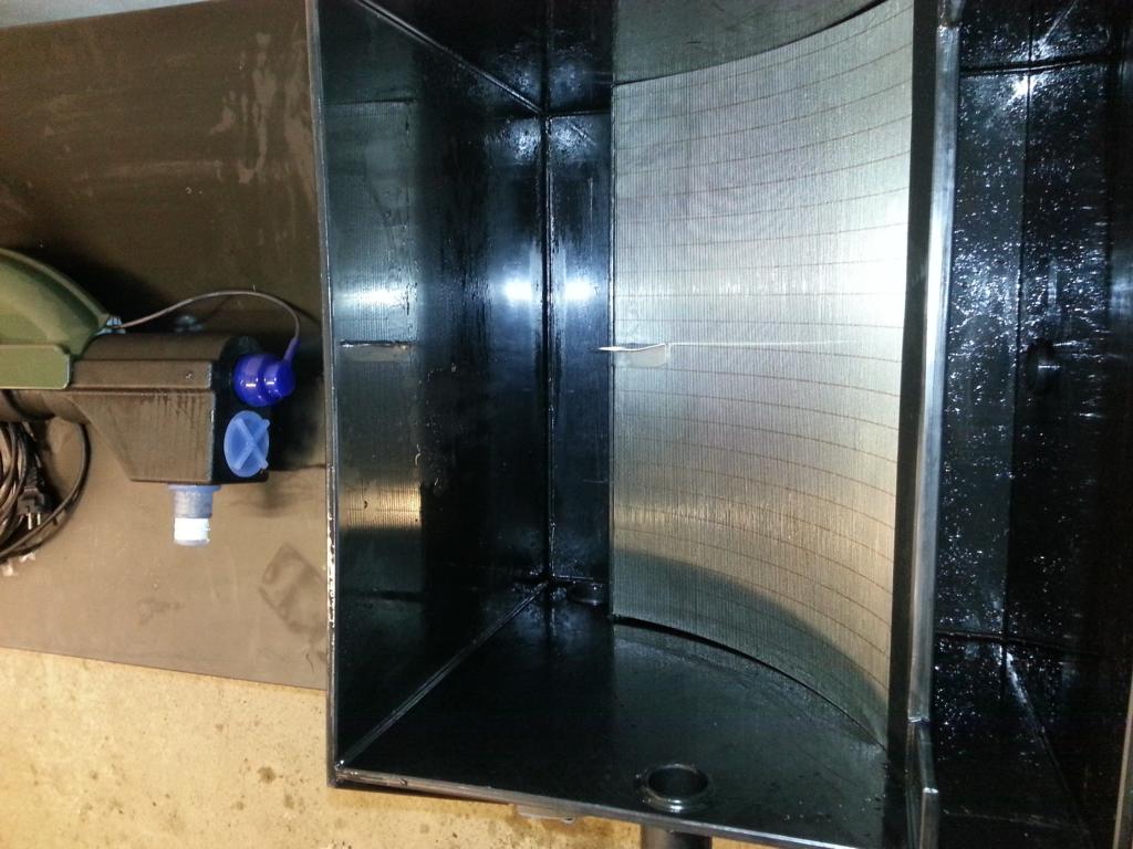 Der Bogensiebfilter sitzt auf der ersten Kammer und arbeitet mit einem 200my Edelstahlsieb. Hier ist ebenfalls ein 50mm Schieber angebracht der mit der Abwasserverrohrung des Kammerfilters verbunden ist.