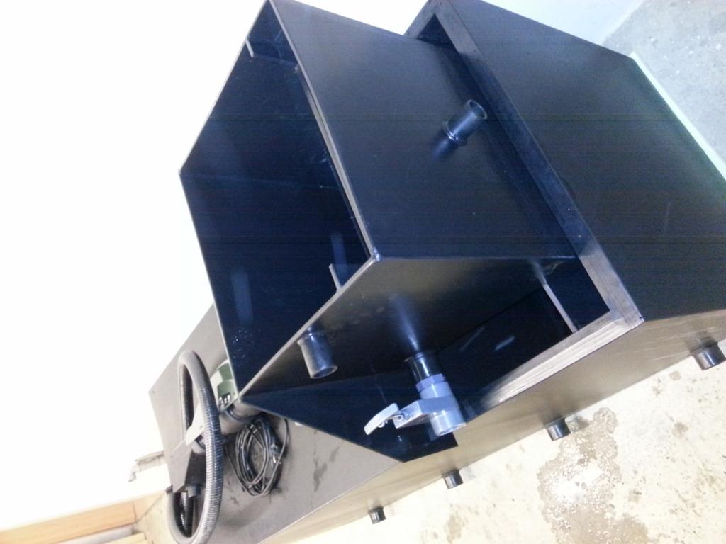 Der Filter ist komplett aus PE gefertigt, hat am Bogensieb einen 40mm Einlauf und einen 100er Auslauf am Kammerfilter. Jede Kammer ist einzeln ablassbar, Schieber und 50mm Abwasserverrohrung sind dabei.