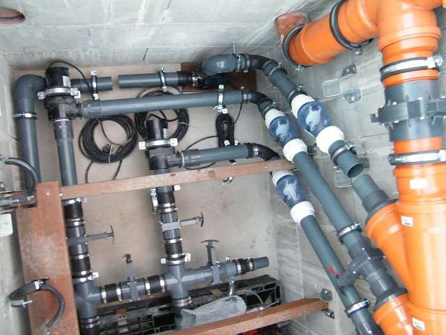 - Verrohrung in 63mm PVC, Bögen, Verteiler, Zugschieber, Rückschlagventile Valterra-