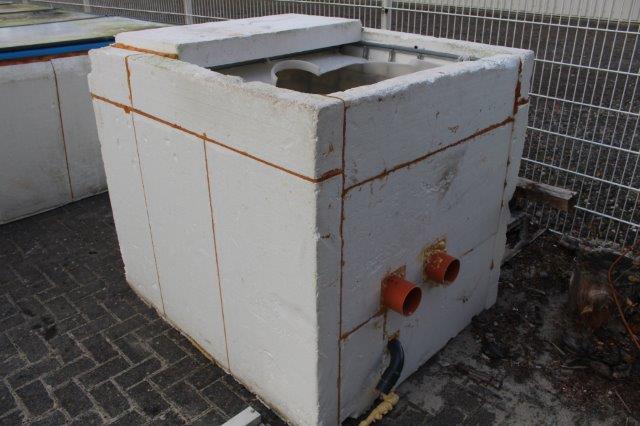 IBC Container umgebaut zur Biokammer. Ebenfalls rund herum isoliert mit 100mm Styropor, Decken ebenso aus 100mm Styropor. Zuläufe 2x DN110, Rücklauf 1x DN50. Im Container alles verrohrt und mit Gitterrohr versehen, also Helix- oder Kaldnesstauglich. Dafür hätte ich gerne 100 Euro