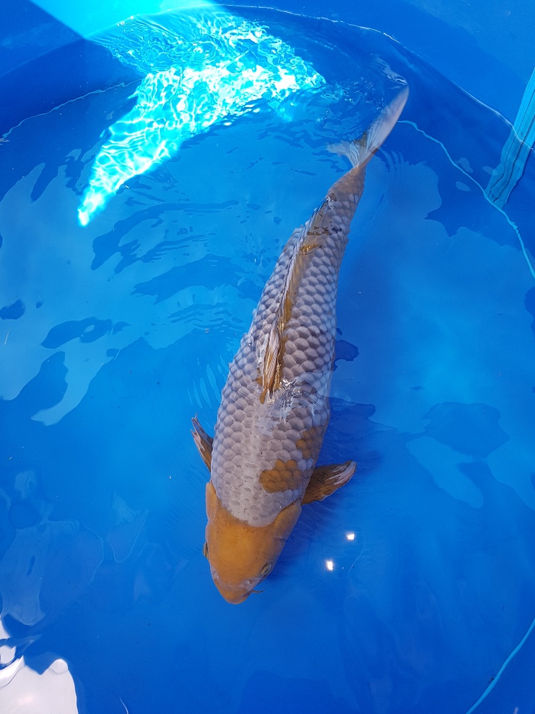 nach einigen Neuzugängen zu Beginn dieser Saison müssen wir nochmal ein bisschen Platz im Teich schaffen. Da wir verstärkt auf Gosanke setzen, fiel die Wahl beim Reduzieren auf unser handzahmens Ochiba Shigure Mädchen.