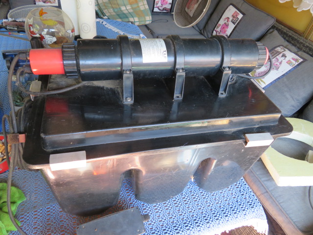 Profi-3-Kammer-Teichfilter mit professioneller UP AND DOWN Technologie, inkl. UV-C Strahler 15 Watt und Pumpe 3. 300 l/h 3 separate Schmutzkammern, durch Schmutzablaßhähne komfortabel einzeln zu entleeren Hervorragende Filtereigenschaft durch UV-C-Strahler, Filterbürsten, Filtermatten und Filtergranulat Die UV Lampe ist komplett neu und war noch nie im Einsatz.