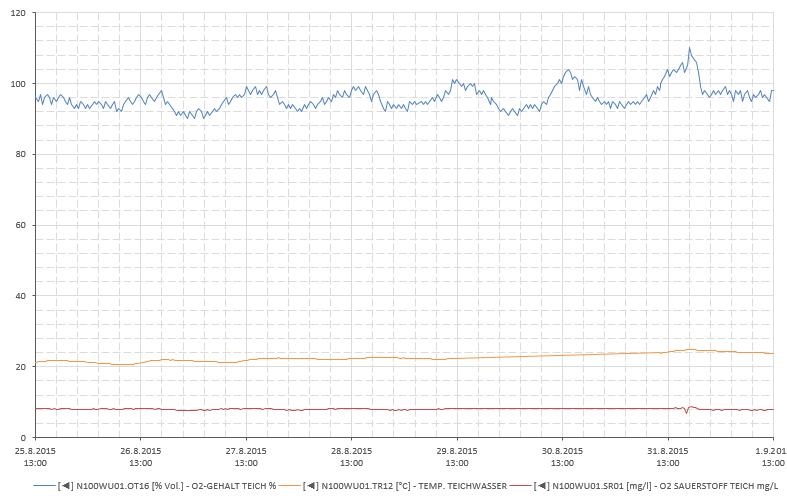 Verlauf in mg/L mit Temperaturkurve