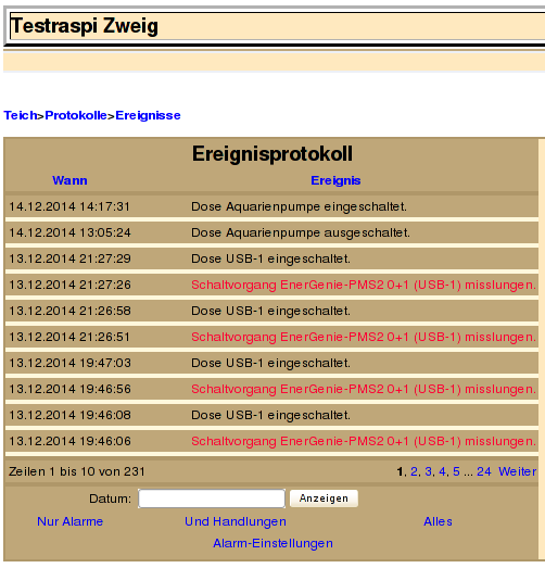 es ist so weit, im Stamm gibt es wieder Neuerungen. Unregelmäßigkeiten und Ereignisse, die bisher nur in roter Farbe im Protokoll erschienen sind, kann Euch darüber hinaus Euer Raspi ab sofort als E-Mail versenden.