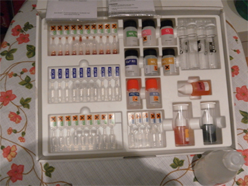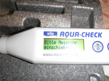 Mehr habe ich nicht mehr aus besagten Gründen getestet. Die Tendenz war klar ab zu sehen. Jetzt noch ein paar Infos: Der Stick ist sehr leicht zu handhaben. Sogar für ungeübte. Die kleinen Kärtchen zeigen einem den Weg. Das einzige, die Dinger sollten aus Plastik oder Einlaminiert werden. Sonst leiden diese extrem. Habe ich aber als kleine „ Schwäche „ benannt und wird von Hersteller geändert. Zumindest habe ich es so verstanden. Falls nicht, dann mache ich das für alle Geräte die meine Kunden bei mir kaufen. Aber dat wird Söll bestimmt machen. Ist ja auch nur nen Schönheitsfehler. Das Gerät ist selbst erklärend. Es ist in Klartext jeder Schritt zu lesen. Es macht auch Selbsttest, sodas ein eventuelles Verschmutzen der Glasoptik erkannt und beseitigt werden kann. Ja, und da waren ja die Fragen nach der Optik. Wie mir erklärt wurde, ist die Optik nicht im Edelstahlteil vorne. Sondern ist im Gerät eigebettet. Diese Glasstab im Edelstahlstab ist nur Schutz und natürlich trägt er auch zur Funktion bei. Das Edelstahlroh schützt diesen aber vor mechanischer Beschädigung. Sollte aus Irgend einem Grund doch mal was damit passieren, es ist voll austauschbar. Das Gerät wird eingeschickt und der Glasteil bzw. Das Edestahlrohr wird erneuert. Es ist an dem Gerät quasi alles Baukastensystem, was eine Austauschbarkeit der Teile extrem vereinfacht. Also wenn mal hinüber, wird’s im werk ohne Probleme ausgetauscht gegen neue Baugruppe. Das gilt auch für das Einschieben dieser Edelstahlhülse. Bei manchen Messungen muß der Meßstab ausgezogen werden. Sagt aber das Gerät einem. Da hatte ich meine Bedenken wegen der Mechanik. Aber ich muß sagen. Die hat nen guten Eindruck auf mich gemacht. Und falls es wiedererwarten doch mal so weit ist, kann auch diese Baugruppe ausgetauscht werden. Das Gerät wird über ne normale Knopzelle also ne Uhrenbatterie betrieben. Also schnell und billig , wenn man mal wechseln muß. Das kann jeder ganz leicht selbst. Die Verpackung ist auch gleichzeitig Küvettenhalter und schwimmt. Clevere kleine Idee. Eine Frage konnte ich noch nicht klären. Das dauert noch. Und zwar. Das Meßgerät soll ja später mehr Parameter messen können. Ob dieses jetzige Gerät umgerüßtet werden kann oder nicht, ob es dazu eingeschickt und dann aufgerüstet wird, das kann ich auch noch nicht beantworten. Diese Frage wird gerade im Herstellerwerk , also bei Söll, geklärt. Ich werde schnellstmöglich über diese Frage bzw. Antwort informiert. Da müssen wir uns halt noch bissel gedulden. Ich sage euch aber dann sofort bescheid. Ich hoffe eine Antwort noch vor Weihnachten zu bekommen. So nun habt Ihrs gleich geschafft. Mein eigenen „ Urteil „. Ich muß sagen, ich war sehr angenehm überrascht, was das Teil kann und wie es insgesamt ist. Absolut zuverlässige Meßwerte geparrt mit sehr hochwertiger Verarbeitung zu einem sehr fairen Preis. Für Einsteiger und auch Fortgeschrittene sehr gut. Wenn es später noch erweiterbar ist, wovon ich ganz fest ausgehe ( das habe ich auch ganz klar und als wichtiges Kreterium benannt ) , das wäre echt super. Für den normalen Meßbetrieb aber auch jetzt schon vollkommen ausreichend. Ein ganz großes Lob an die Idee, daß nix mehr umgerechnet werden muß. Das ist ein ganz großer Vorteil gegenüber vielen anderen Geräten. Reinstecken ,messen und gleich in mg/l ablesen. Das ist absolut anwenderfreundlich. Die Klartextmenueführung top. Ersatzteilverfügbarkeit durch Austausch von Baugruppen, ( wenn es mal sein muß ) top. Was mir auch sehr gut persöhnlich gefällt. Es wird hier bei uns in Deutschland produziert. Nix China. Das sieht man auch sofort und sichert unsere Arbeitsplätze im Land. ( sollte auch mal erwähnt werden ). Ich hoffe ich hab nix vergessen, wenn doch, bitte fragt. Ich habe sehr viel an Infos bekommen. So nun ein Satz in eigener Sache. Ich sage es gleich vorweck. Dieser Bericht beruht absolut auf meine jetzigen Testerfahrungen damit. Ich habe bzw. werde und wollte nie irgend welch Vorteile oder so dadurch haben. Er ist völlig neutral abgelaufen. Von diesem Test hatte ich eine Produktlistung bei mir abhängig gemacht. Egal wie die eine offene Frage ( update-fähigkeit ) ausgeht, habe ich mich entschlossen, dieses Produkt in mein Sortiment aufzunehmen. Weil es mich absolut überzeugt hat. Es wäre zu erwähnen, das es in 2 Varianten erhältlich ist. Einmal nur als Sologerät ( ohne Reagenzien ) Die kann man auch einzeln kaufen. Und als kleine Vollversion , also Gerät mit Reagenzienstarterset Da ich einige Werte für uns als nicht wichtig erachte Chlor, Silizium, werde ich die Vollversion etwas anders ausstatten lassen. Da wird statt der beiden Reagenzien dann von den anderen halt ein paar mehr drinn sein. Halt so viel wie die Gelddifferenz hergibt. Auch werden 2bis 3 Küvetten mehr drinn sein, damit man nicht immer sauber machen muß zwischendurch. Soll also heißen: Das diese Vollversion zwar genauso kostet wie die normale Vollversion, nur das der Inhalt an Reagenzien leicht modifiziert für unser Hobby ist. Das ist aber eine individuelle sache und muß mir bei Bedarf rechtzeitig gesagt werden. Bestellbar ab sofort ist alles in meinem Shop. Wie gesagt bei der Vollversion, dann bitte kurze Mail an mich , damit ich das anpassen kann. Die Ersatzreagenzien werde ich auch in den nächsten Tagen im Shop einstellen. PS:. Ja ich weiß, das war Eigenwerbung der letzte Absatz, aber die Infos sollte man halt wissen. Talerchen zahle ich natürlich, bitte mir die nötige Adresse dann schreiben.