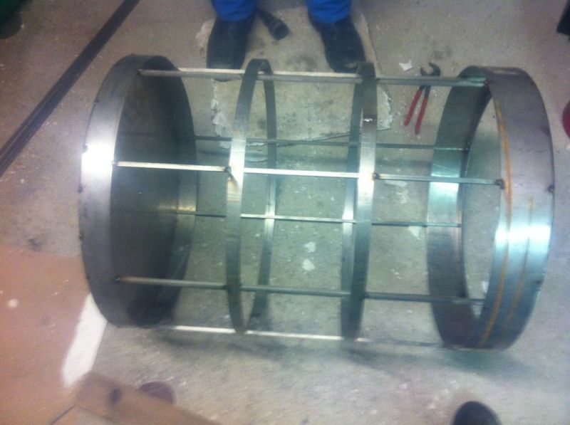 Dateikommentar: das Grundgerüst der Trommel, mit Zwingen zusammengehalten
