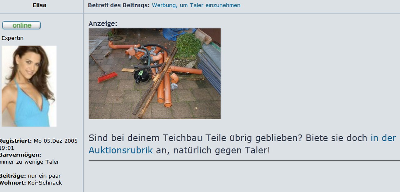 Registriert: Mo 05.Dez 2005 19:01 Cash on hand: immer zu wenige Taler Beiträge: nur ein paar Wohnort: Koi-Schnack |