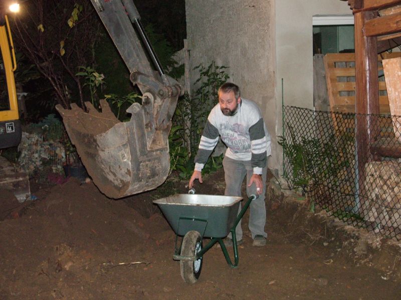 Das kenne ich...als die große Aushubaktion war, hab ich 10 Schubkarren + Schieber gehabt. Die Hälfte lag auch oft neben der Schubkarre...