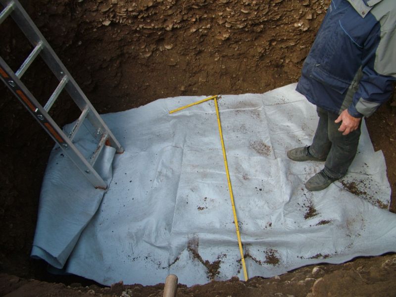 Mit Hilfe dieser Grabung konnte ich gleich das Sandbett der bereits verlegten Rohre kontrollieren.
