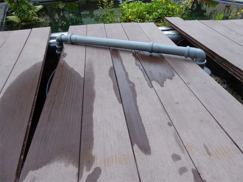 Die Abdeckung war stabil, den Widrigkeiten des ohnehin recht milden Winters hat sie problemlos getrotzt. Aber sie hatte einen riesigen Nachteil: Der Teich wurde abgedunkelt. Auch ein Blick in den freien Teil der Scheibe gab nur selten einen Blick auf einen Koi frei. Und wenn doch, so waren kaum Einzelheiten erkennbar.