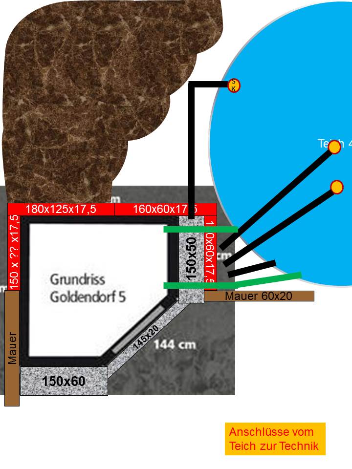 Bei der Anschlussverrohrung des Teiches folge ich dem Rat aus dem Forum und gehe konsequent auf 110mm.