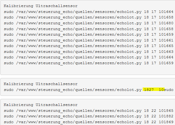 echo "Kalibrierung Ultraschallsensor\n";        //print KAlibrierung Ultraschallsensor
