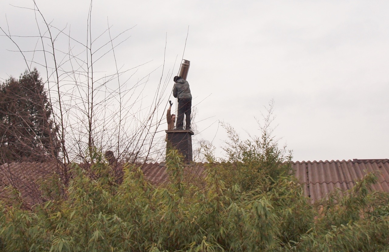 Danach alles wieder abgebaut und hoch auf das Dach und von dort so lange mit einer Aluschiene