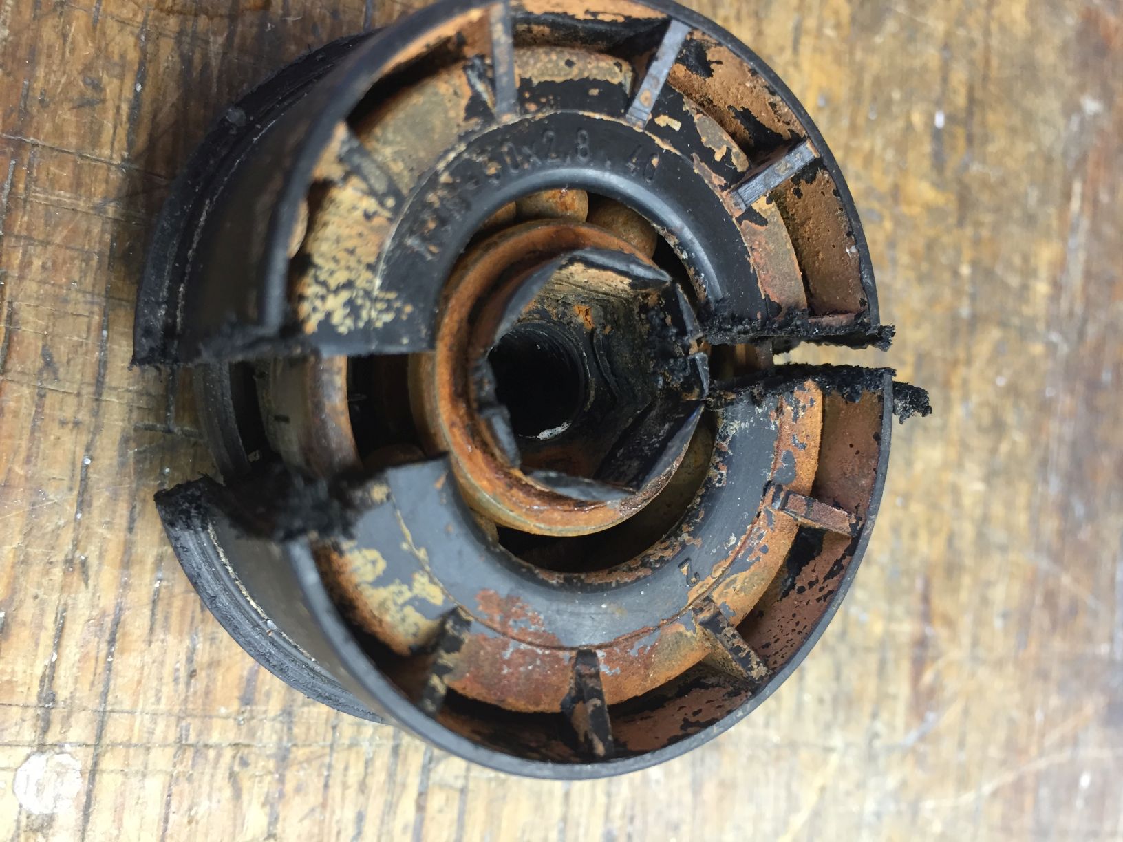 ich habe mal ein Lager auseinandergeschnitten, weil ich wissen wollte wie das drinnen aussieht.
