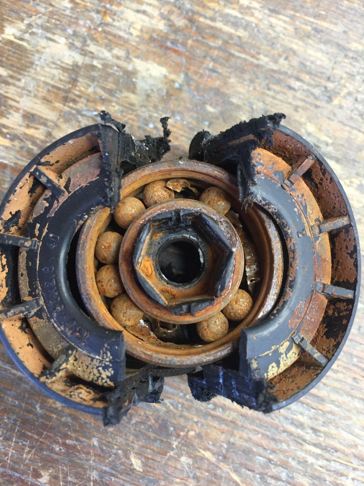 ich habe von DetlefS gestern noch einmal bestätigt bekommen, dass die schwarzen götzschen Lager mit einem Kugellager aus rostendem Wald- und Wiesenstahl eingebaut wurden. Die Kugellager darin waren durch den Rost nicht mehr gängig.