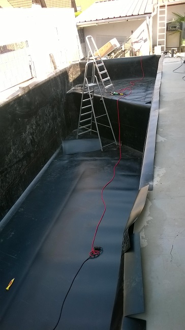 Während der Teich mit PE ausgekleidet wurde machten wir uns an die Verrohrung des Filters.