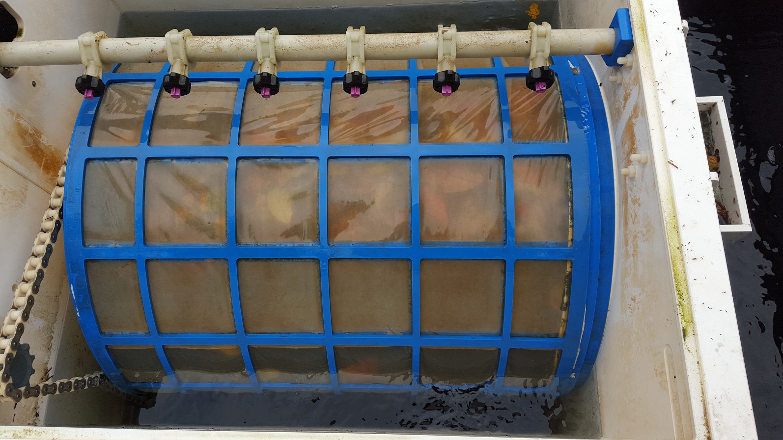 - die Spülrinne des Trommelfilters war mit Laub verstopft
