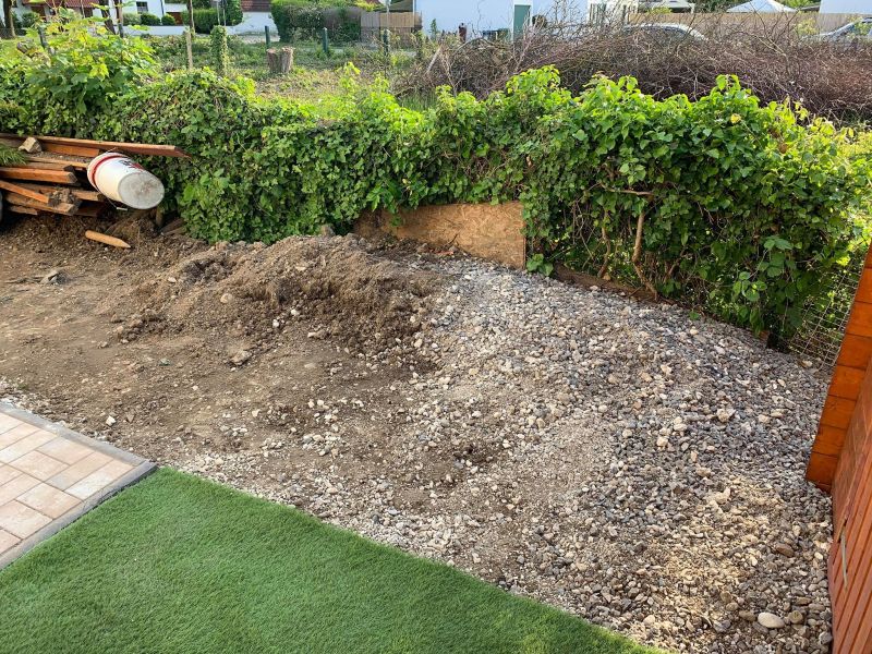 Hier kommt demnächst das Unkrautvlies drauf, anschließend werden die Kieswaben verlegt und unser gewünschter Kies/Split wird verteilt.