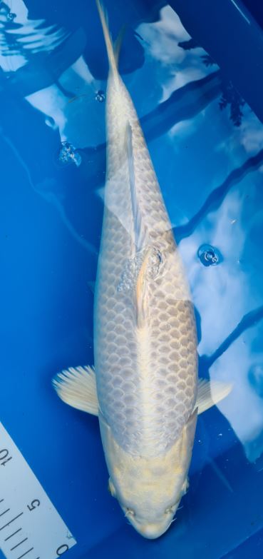 Der Koi hat aktuell 43cm und wurde im Sommer 2019 geboren.