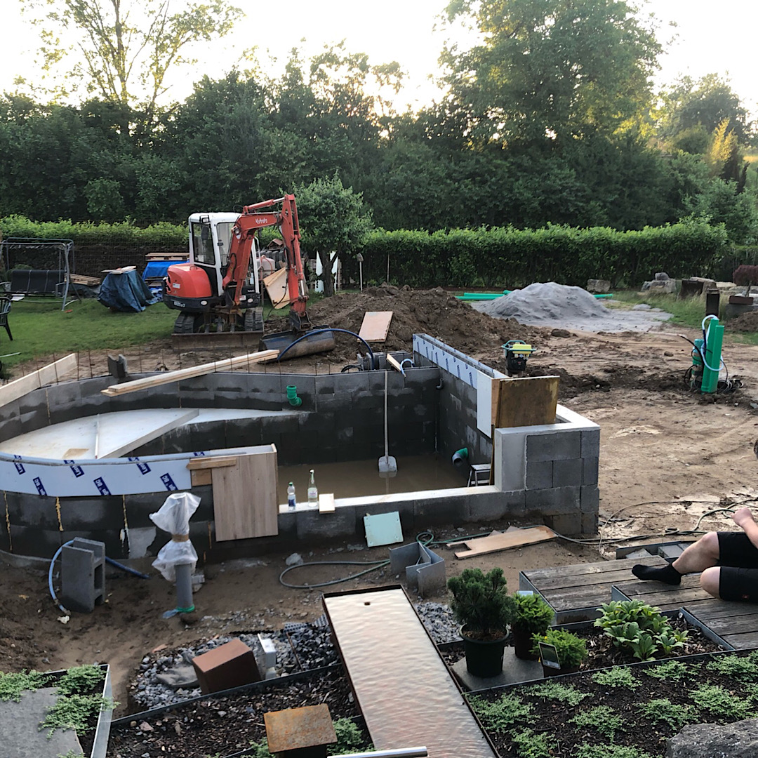 Hochteich 20m3 - 19er Betonschalsteine und 50mm Isolierung